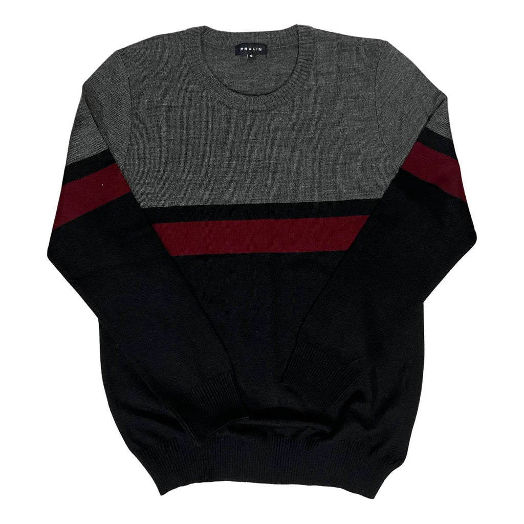 Suéter Gris/Corinto/Negro con Cuello Redondo de Hombre